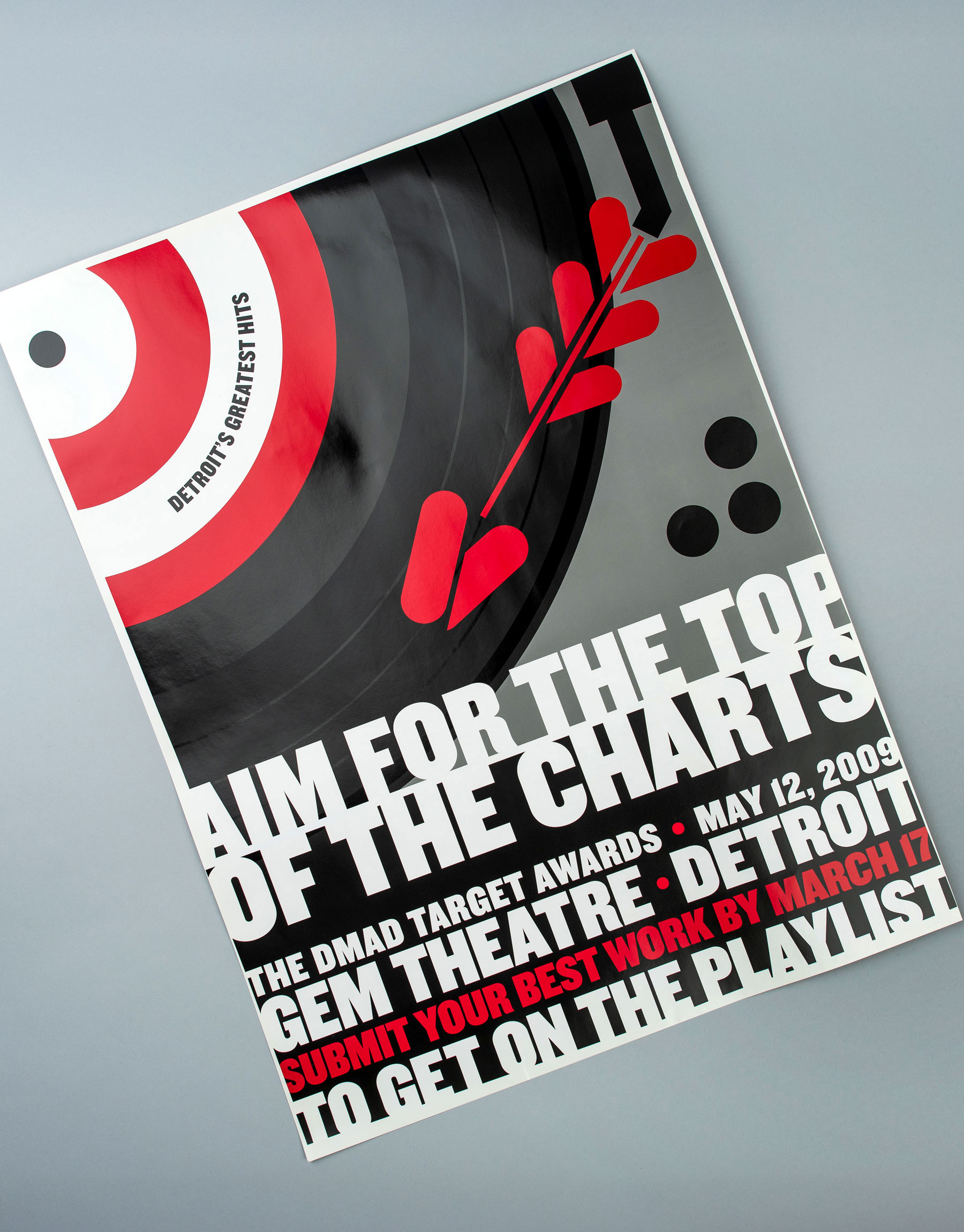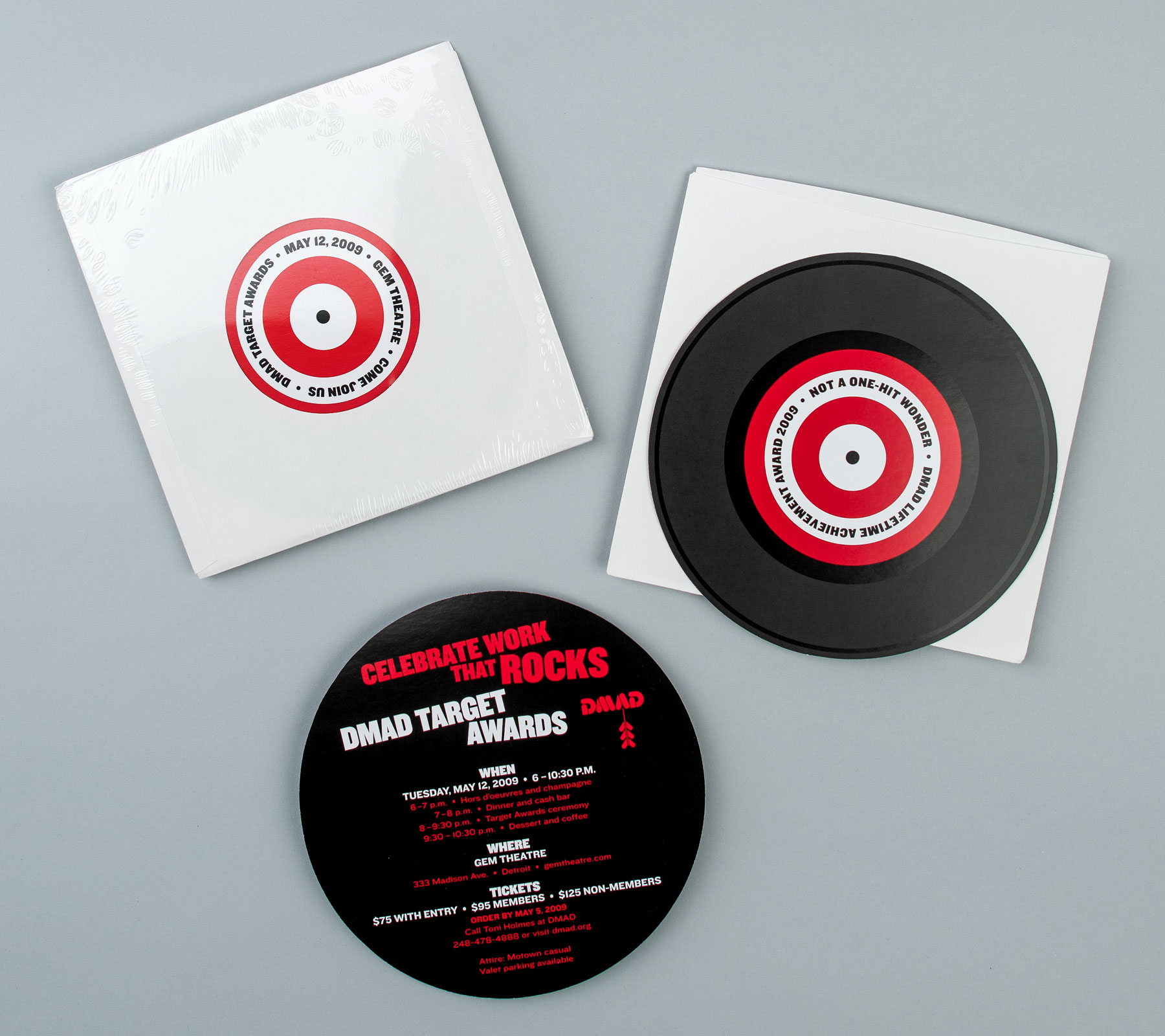Client: DMAD (Wunderman/Team Detroit) Role: Art Direction, Design, Illustration Invitation, Call for Entries Poster and Program for the 2009 DMAD Awards. Playing off the 50th Anniversary of Motown, the invitation was sent in an actual record sleeve.